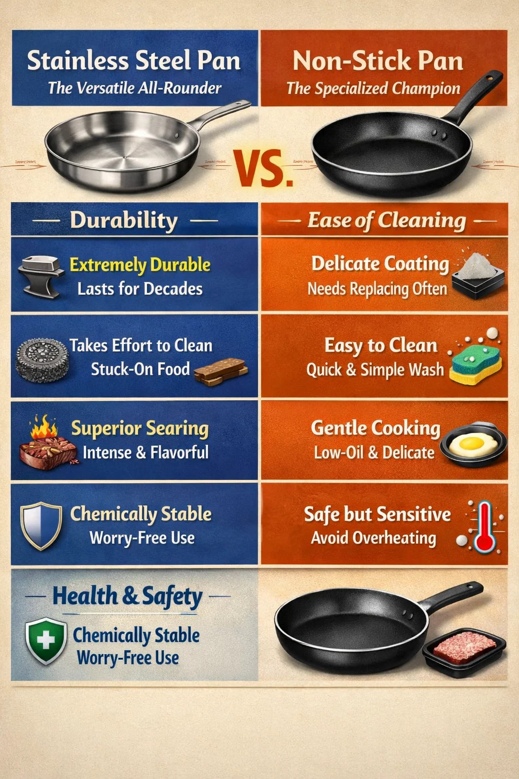 Ao escolher panelas, as panelas de aço inoxidável e antiaderentes têm suas próprias vantagens. Não se trata de um substituindo o outro, mas sim de um “versátil e versátil” e de um “campeão especializado” na cozinha.