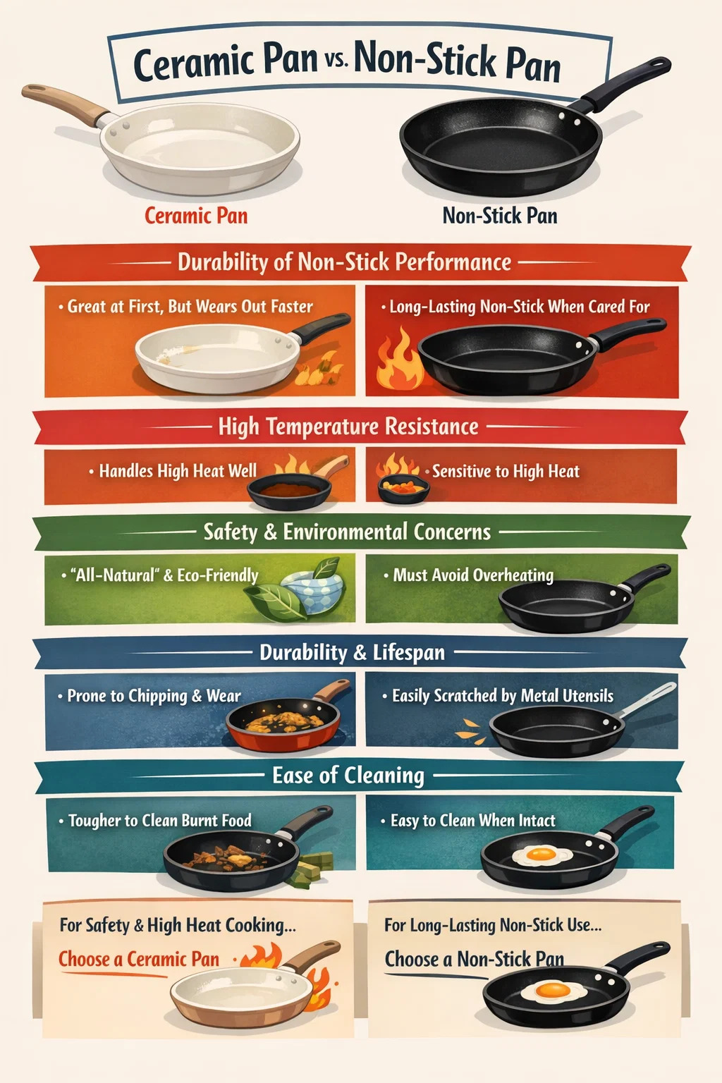 Diferenças: Como as panelas de cerâmica são resistentes ao calor, às vezes a gordura queimada é mais difícil de limpar completamente do que as panelas antiaderentes tradicionais. As panelas antiaderentes tradicionais, desde que o revestimento esteja intacto, podem ser facilmente limpas apenas com água e uma esponja.