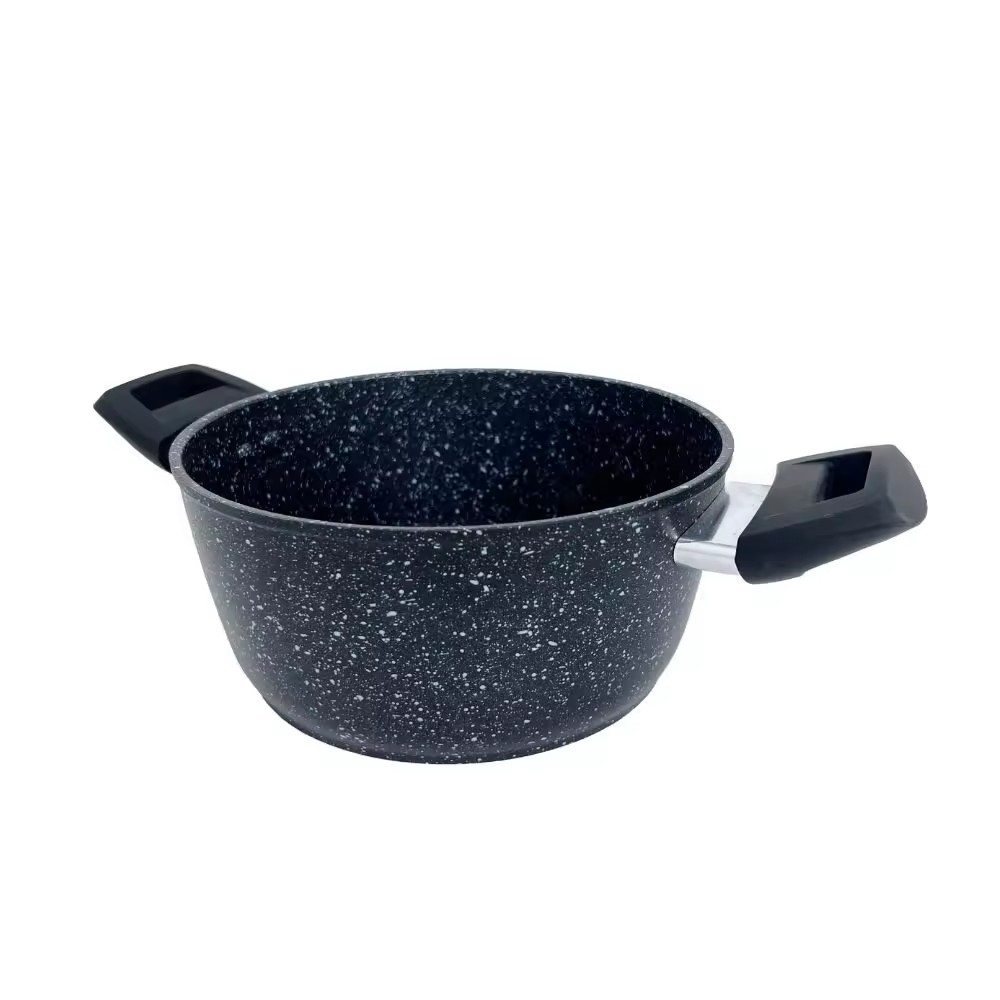 Caçarola de revestimento de granito de mármore preto de panelas com tampa de vidro Casserole De Cuisine Complet Wholesale