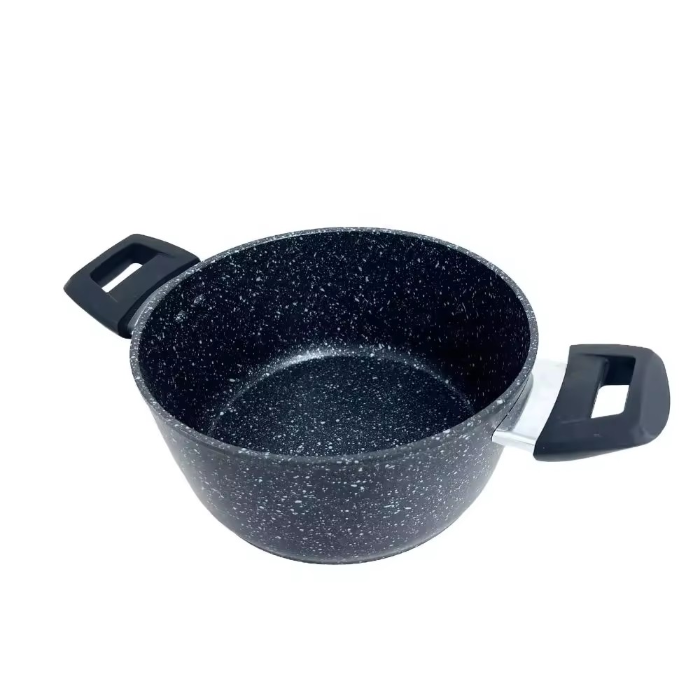 Lar / Produto / Caçarola / Caçarola de revestimento de granito de mármore preto de panelas com tampa de vidro Casserole De Cuisine Complet