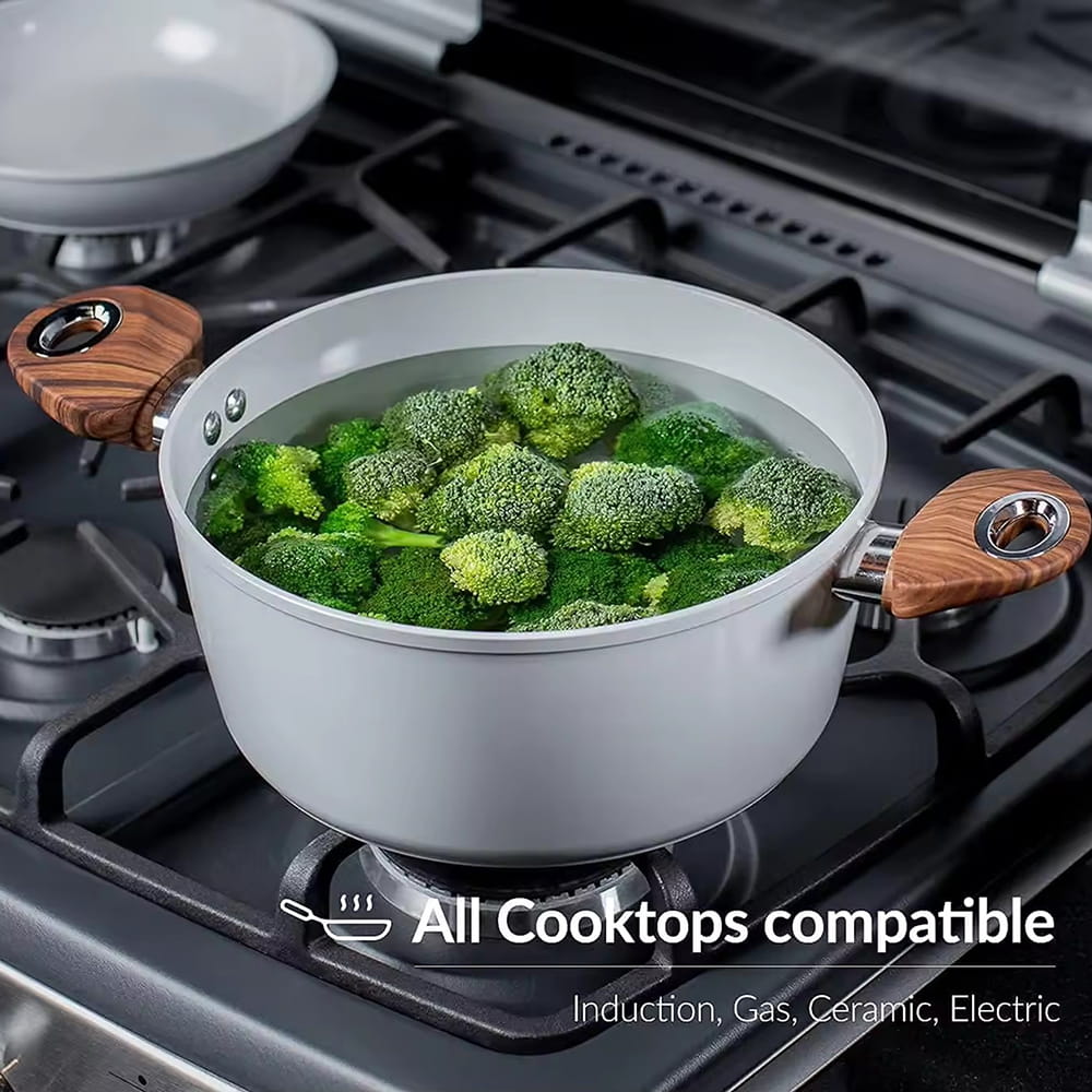 Panela caçarola de fundição sob pressão com fundo de indução não tóxico e antiaderente com toque macio