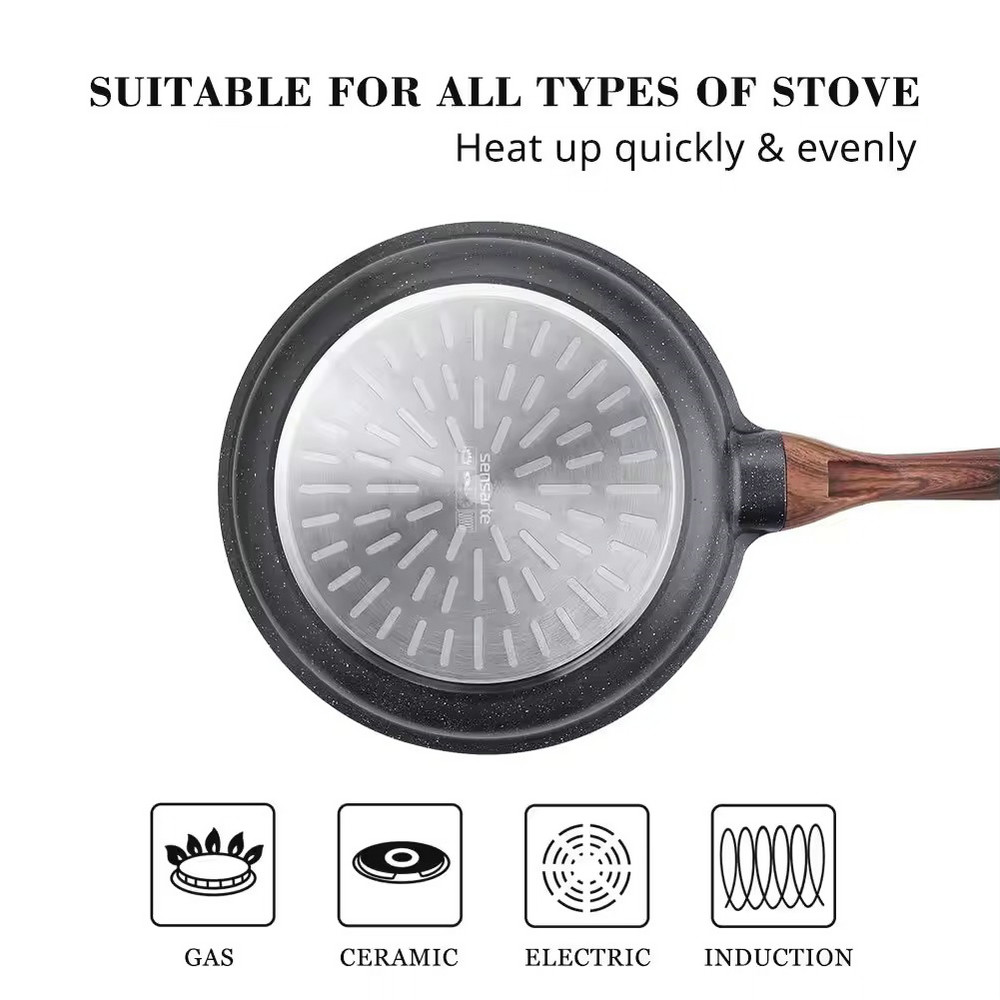 Panelas multiuso antiaderente personalizada com cabo de madeira Wholesale