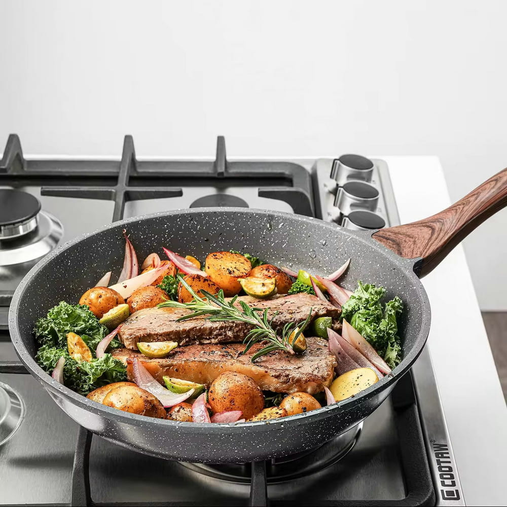 Lar / Produto / Frigideira / Panelas multiuso antiaderente personalizada com cabo de madeira